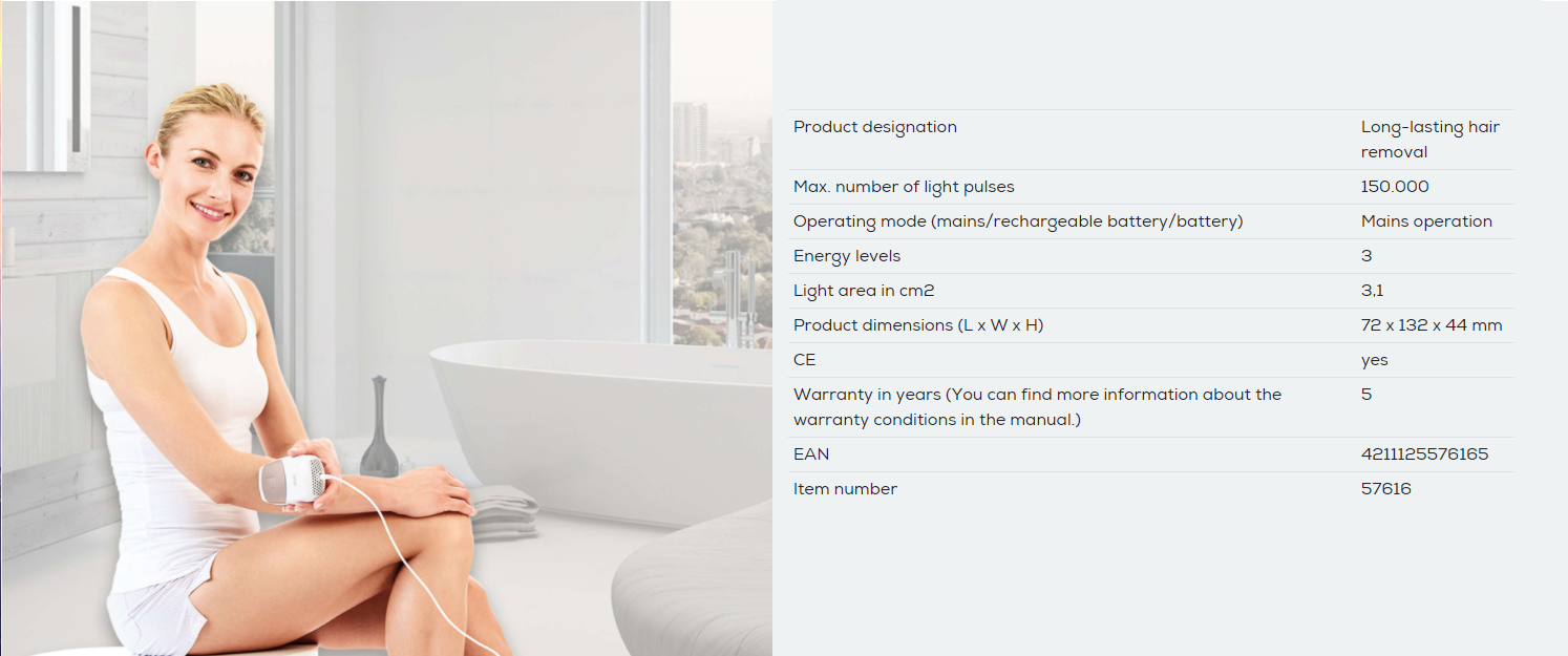*** 激光能量為最低水平 , 手臂,腿,臉,腋窩和比基尼線